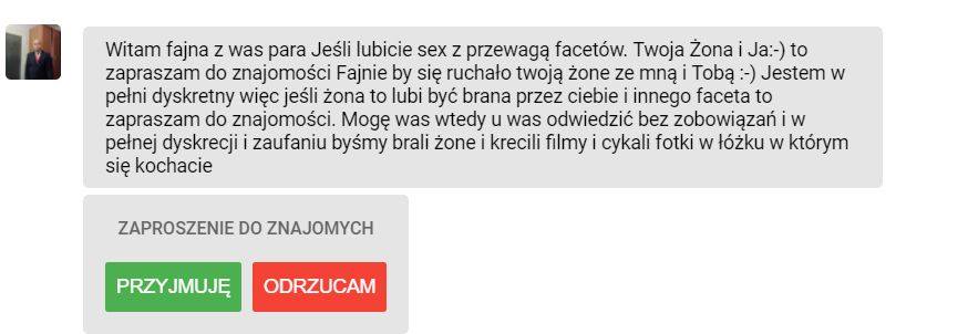 Wulgarny wydźwięk, to jedno. Brak zrozumienia idei swingu – to drugie. Nadawca sam też się pogubił czy pisze do nas jako do pary, czy do mojego męża, czyli taka lekka schizofrenia w pakiecie. Denerwuje nas, gdy ktoś pragnąc się z nami spotkać, nie zada sobie nawet minimalnego wysiłku, przeczytania kim jesteśmy i czego oczekujemy. Po co marnować czas, skoro lepiej masowo wysyłać ten sam stek bzdur do setek ludzi. Może jakiś frustrat się przecież zgodzi.