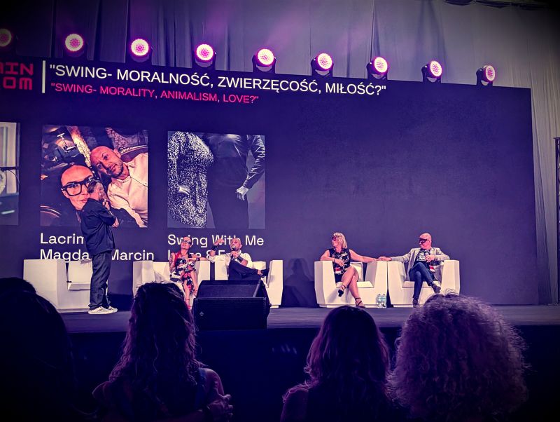Podczas panelu rozmawialiśmy o różnych twarzach swingu — tych dzikich, namiętnych, ale też czułych i bliskich. O tym, jak ważne jest bycie ze sobą, a nie tylko obok siebie. Bo właśnie w tej subtelnej różnicy kryje się cała istota. Czterdzieści pięć minut rozmowy minęło w mgnieniu oka. I wiemy już jedno: o swingu możemy mówić, mówić i… mówić bez końca.