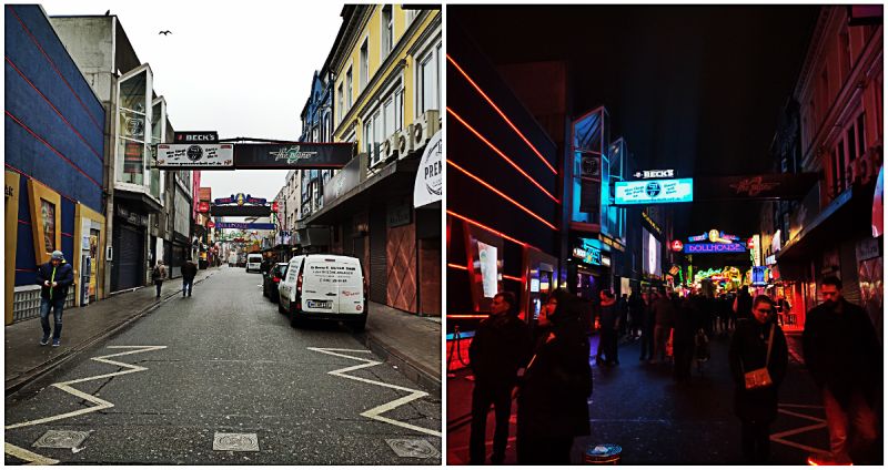 Z racji tego, że pod wieloma względami pokręcone z nas osobniki, to przed pójściem do Equinoxe, postanowiliśmy odwiedzić Reeperbahn raz jeszcze i zobaczyć, jak zmienia swoje oblicze, gdy słońce chowa się za horyzontem, zastępowane przez światło migających neonów.